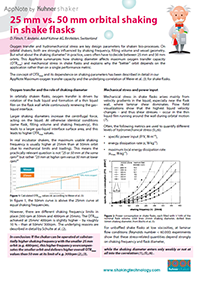 Die AppNote enthält generelle Anwendungstipps bzw. -informationen und Daten zum Thema geschüttelte Kulturen. Zum Beispiel zu hydrodynamischen Prinzipien, Relation zwischen orbitalem Schütteldurchmesser und Sauerstofftransferrate (OTR) oder wie man Evaporationsverlust vermindert.